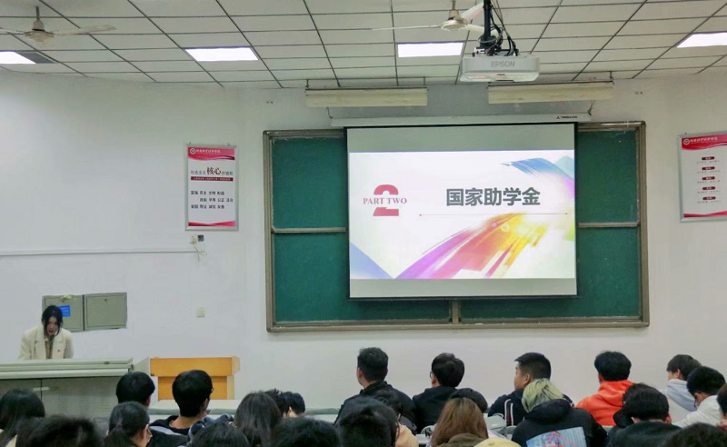 会议整体有资助部负责人李雅静进行宣讲资助政策,资助政策内容包含国家资助政策、我校学生资助工作体系、兵役资助政策。本次资助政策内容为我校学生资助工作体系、兵役资助政策。同学们认真听讲,积极的发问,用心了解资助政策,负责人李雅静也细心解答,整个活动呈现出良好的氛围。