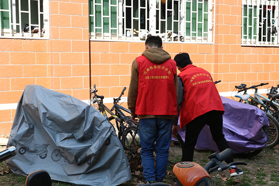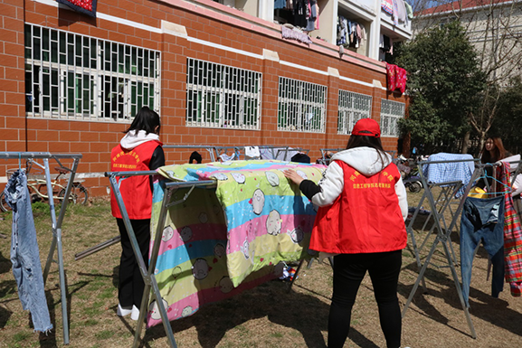 在生活部部长倪潜的带领下,同学们组成一个个小组,拿着卫生工具,在各个宿舍楼下弯腰拾捡路上的生活垃圾、扶起倒下的自行车辆和捡起同学们掉到地上的被子。随后,大家又义务清理篮球场和天然足球场。同学们迎着和煦的春风,沐浴着温暖的阳光,虽然会累,但不会放过任何一个有垃圾的角落。