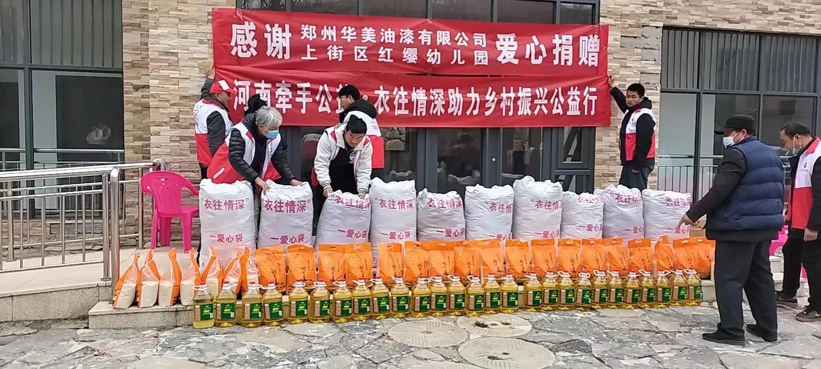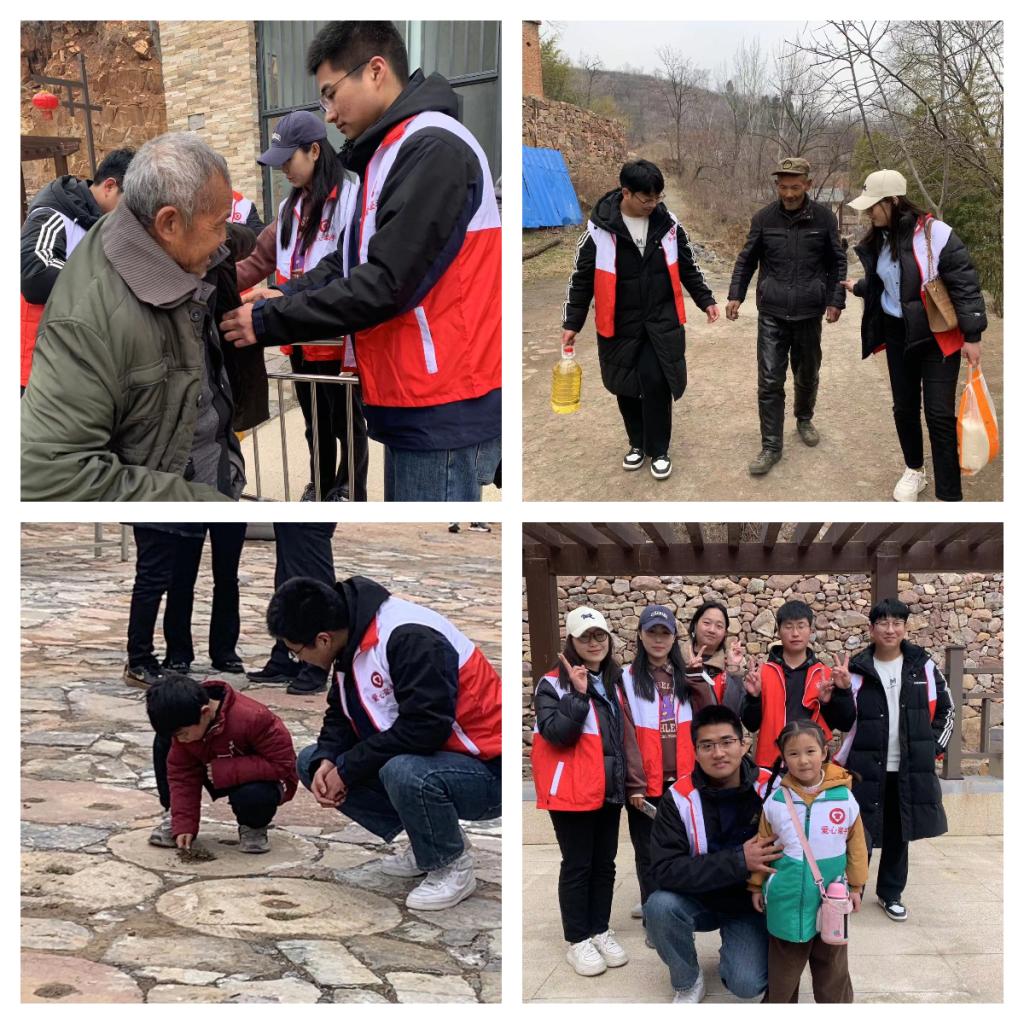 2023年2月25日,在登封徐庄镇柏石崖村,tyc7111cc太阳成集团(软件学院)的六名志愿者在河南牵手公益·衣往情深公益组织带领下,与一批爱心企业携手共同开展了助力乡村振兴公益行动活动,为这里的27户孤寡老人和困境家庭捐赠了衣物、大米和食用油,提供了义诊及戏曲演出服务,并和这些家庭共进午餐。