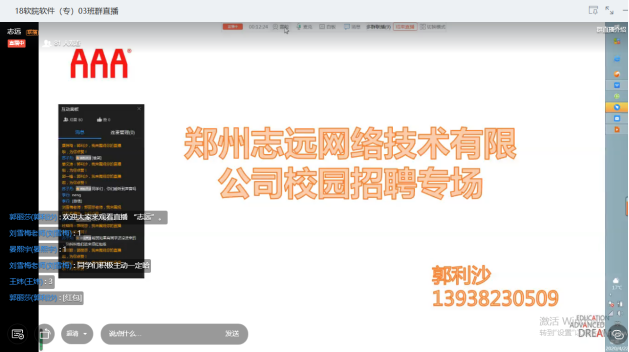 为有效的落实毕业生就业服务工作,在院领导的大力支持下,郑州志远网络有限公司面向我院龙子湖校区毕业生,通过钉钉直播进行了网络专场宣讲会。
