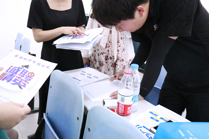 6月3日下午14:30,双选会在教学楼B座正式召开。此次双选会,针对我院毕业生的特点,邀请到了平安普惠投资咨询银行、汕头市常春藤软件有限公司、郑州猿辅导信息科技有限公司等50余家用人单位前来,提供包括UI设计岗、JAVA开发岗、软件测试岗、人力资源岗等多类岗位供毕业生选择。