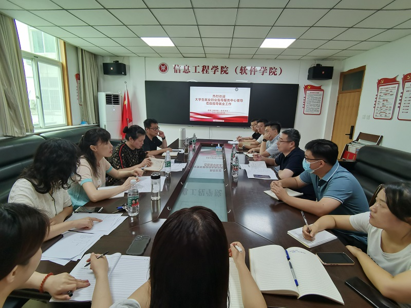 为认真贯彻落实习近平总书记关于高校毕业生就业工作的重要指示批示精神,进一步做好2022届毕业生就业工作,8月9日上午,校大学生就业创业指导服务中心副主任张琳和中心范巍、陈莉、张卓老师一行莅临我院英才校区调研指导就业工作,学院党委副书记刘向辉和全体辅导员参加了会议,会议由党委副书记刘向辉主持。